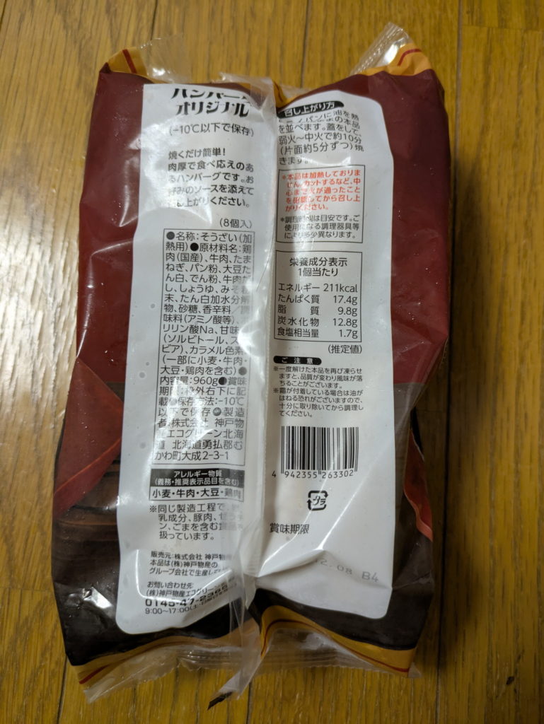 - 1. 神戸物産(製造:神戸物産エコグリーン北海道) ハンバーグ オリジナル 8個入(960g) 438円 業務スーパーで購入 購入日:2025/07/12