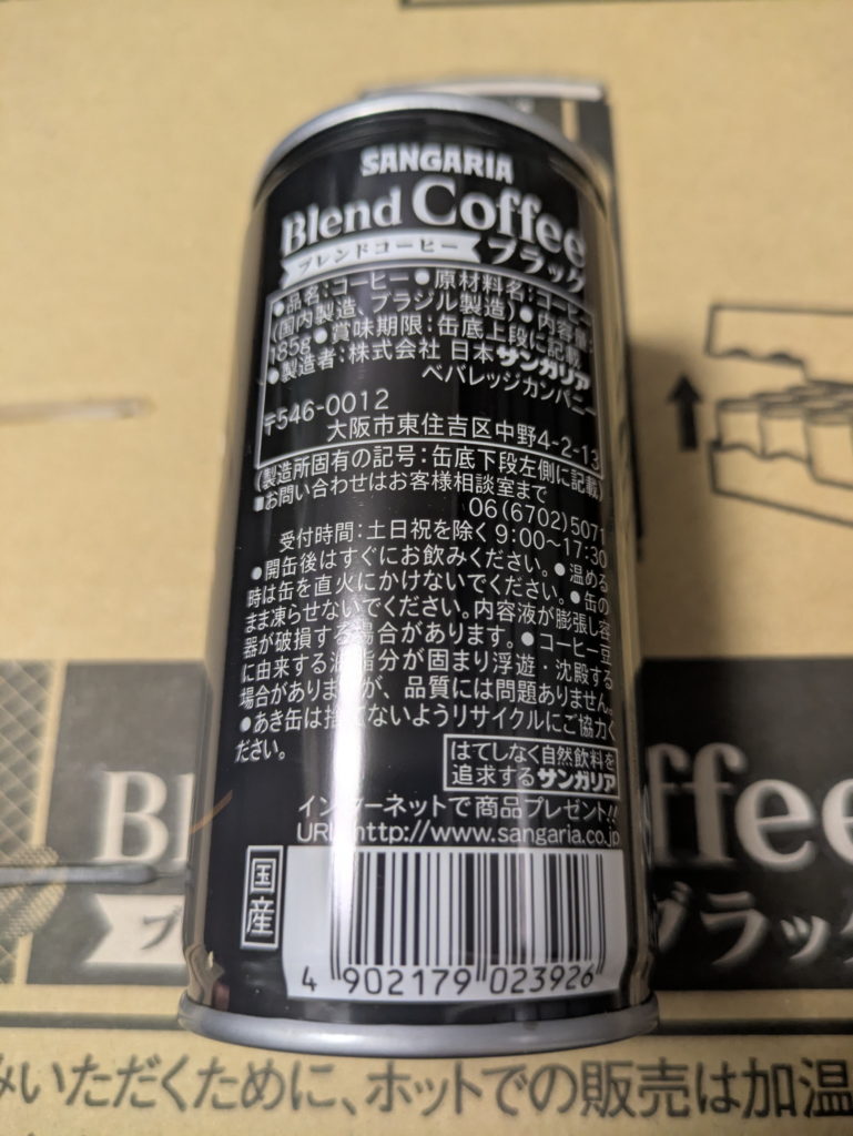 - 4. 日本サンガリアべバレッジカンパニー ブレンドコーヒー ブラック 185g×30缶入 1100円 業務スーパーで購入 購入日:2025/07/24