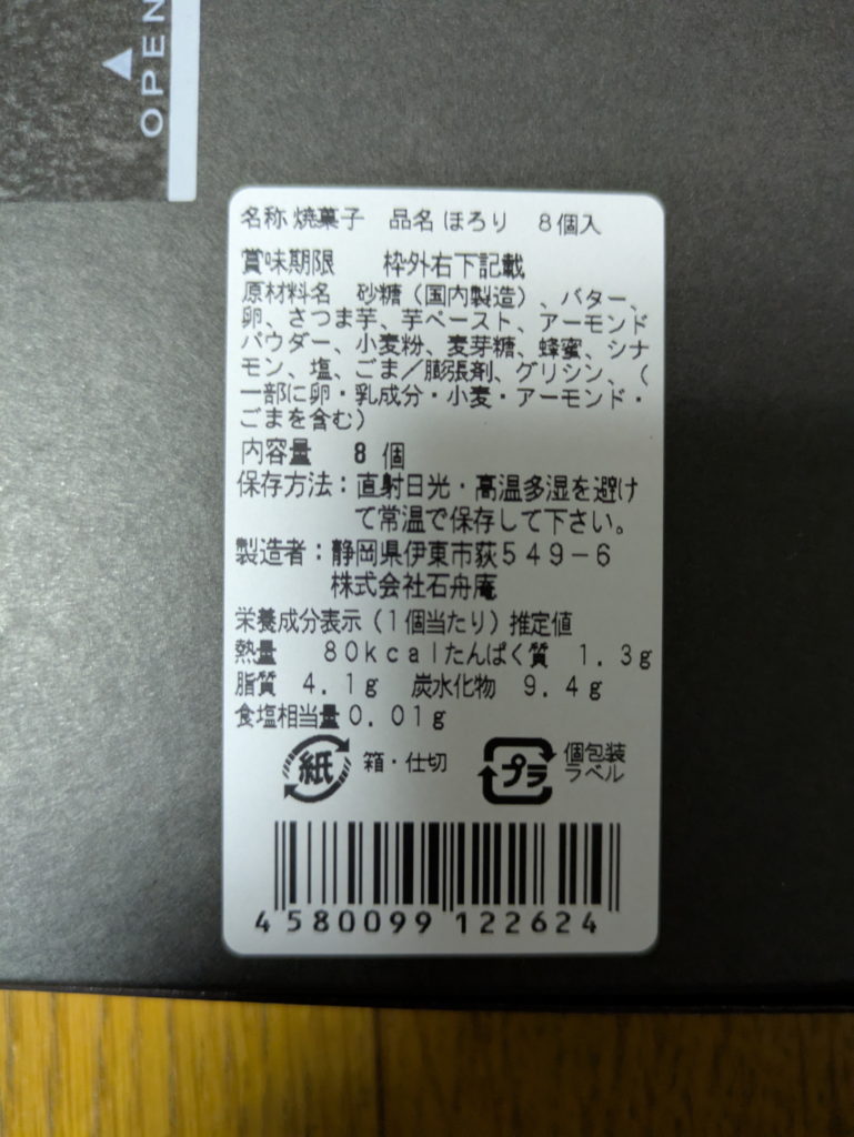 石舟庵 三島甘藷ほろり 8個 1200円 PLUSTAで購入 購入日:2025/07/31