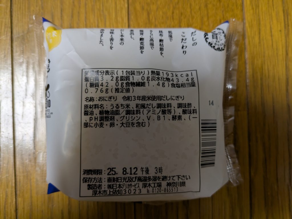 - 9. 日本デリカサービス 令和3年度産米使用(備蓄米) だしにぎり 100円 ローソンで購入 購入日:2025/08/11
